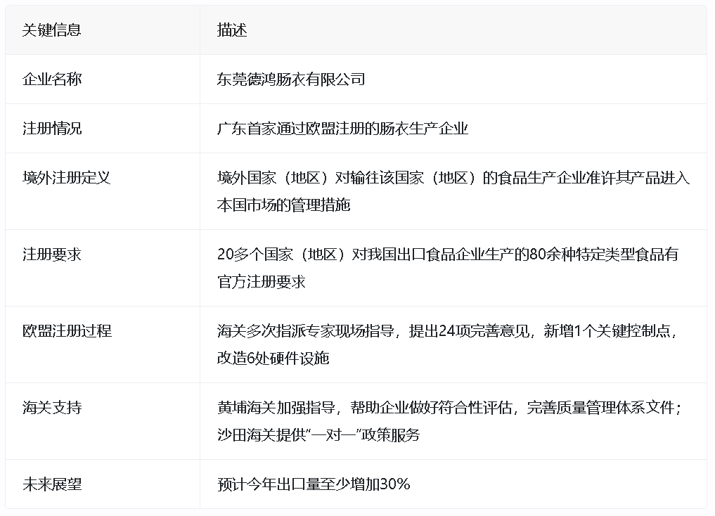 表格:东莞德鸿肠衣有限公司通过欧盟注册的关键信息