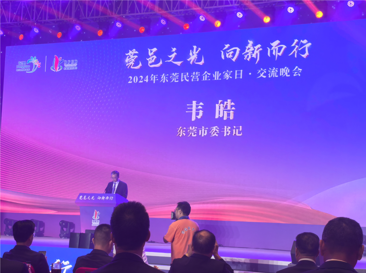 当天下午,2024年东莞民营企业家日·政企座谈会召开,东莞市委书记韦皓代表市委、市政府向全市民营企业家致以诚挚问候。他表示,改革开放以来,东莞民营经济一直与这座城市同频共振、共同成长,是东莞经济增长的主力军、科技创新的主动力、就业创业的主渠道。40多年来,东莞从一个传统农业县,逐步发展成为GDP过万亿的国际制造名城,离不开一代又一代民营企业家的努力拼搏、艰苦奋斗。同时,他希望广大民营企业家发扬厚德务实、敢为人先的莞商精神,坚定信心、乘势而上,积极抢抓政策风口,大胆投身新兴领域,加快推动转型发展,在新征程上大显身手、大放异彩。