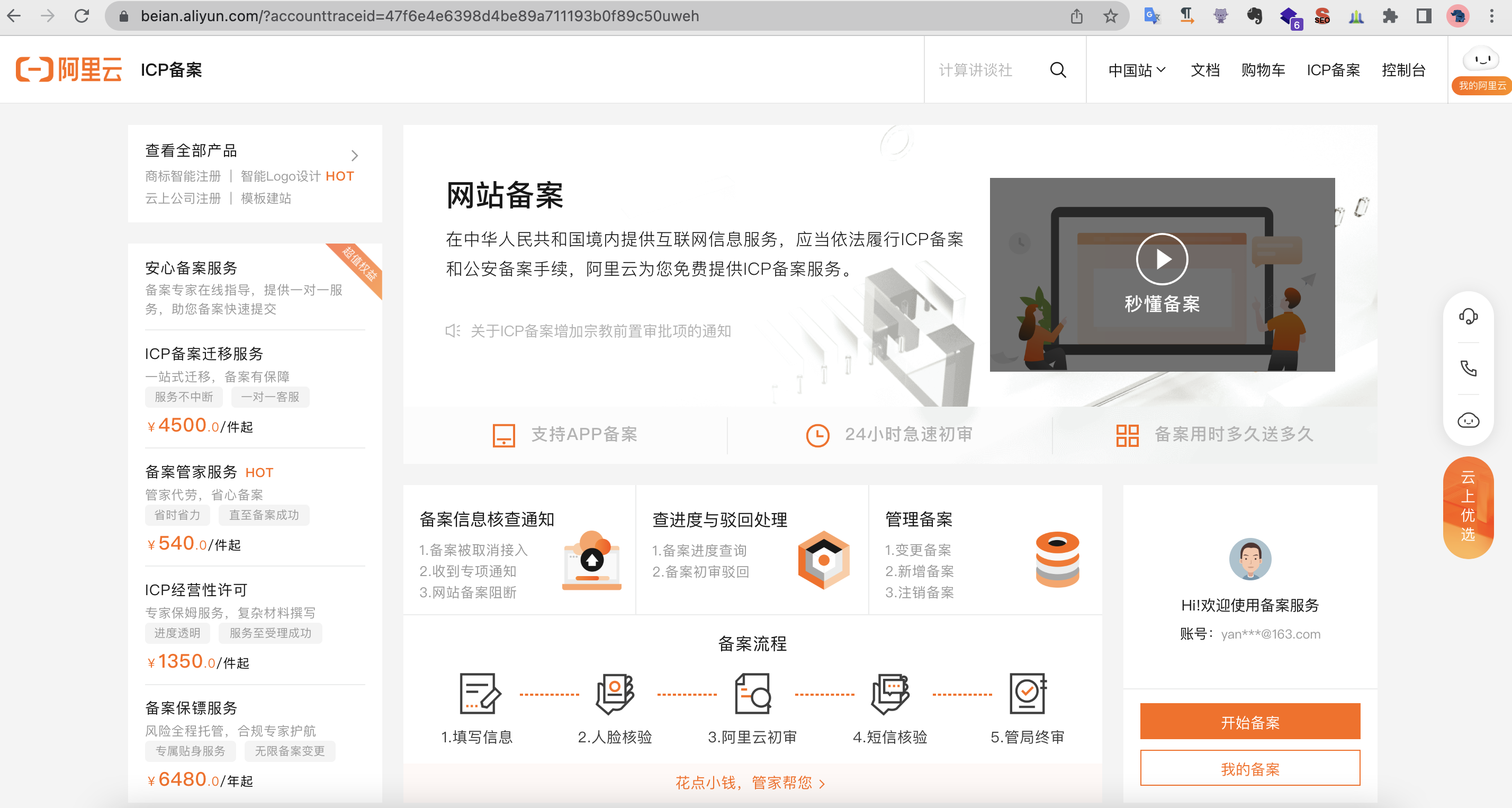 2、在阿里云提交域名备案服务,应先提前准备好的材料有公司的营业执照、法人的手机号、法人的邮箱、法人的身份证照片。域名备案一般需要10到20个工作日左右。如果比较着急使用,可以先把网站部署到香港服务器,香港服务器是不需要备案即可打开的。