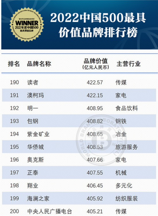 “澳柯玛”连续第四次上榜中国500最具价值品牌