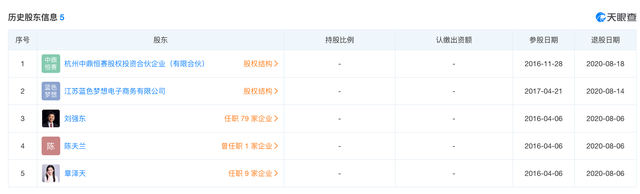根据天眼查,江苏赛夫食品的大股东为江苏赛夫贸易有限公司,持股比例72.3%。江苏赛夫食品历史股东中,有刘强东和章泽天,退股日期为2020年8月6日。4天之后的8月10日,刘强东和章泽天退出了江苏赛夫贸易有限公司股东序列。