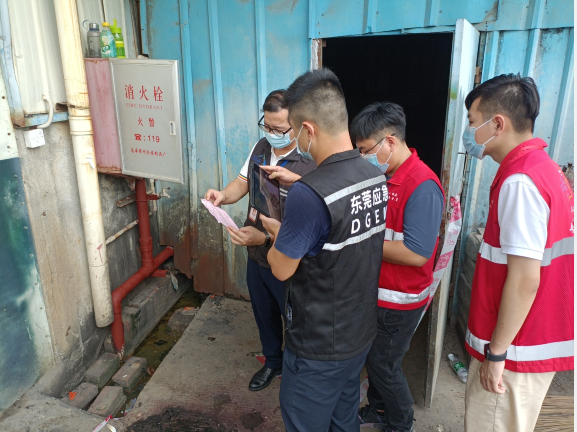 在桥头东江村一分租式工业园,联合检查组按照自身监管职责,对分租式厂房安全生产、消防安全、环境管理、违章搭建等方面进行详细检查,重点检查企业是否签订安全生产管理协议、是否开展应急演练、是否开展隐患排查、是否堵塞消防安全通道、是否存在偷排废气废水、是否违章搭建、是否办理执照等。检查中,工作人员发现一家玻璃加工厂生产设备和电箱下存在生产性积水现象,存在漏电安全隐患。此外,一家木制品加工厂使用的布袋除尘器电机非防爆,产生粉尘的区域未按规定使用防爆线路等问题。检查人员要求其马上进行停产整顿,并下达执法文书,责令其限期完成整改。