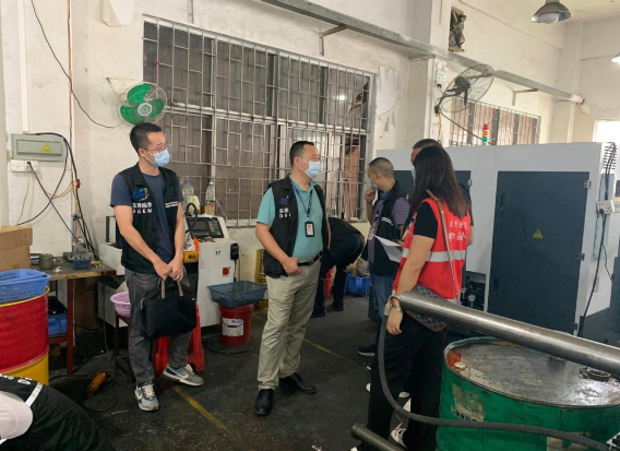 检查组一行来到塘厦清湖头环市南路112号的分租式厂房,分别对该厂房内物业管理公司负责人和多家企业主要负责人进行了询问,详细了解分租物业和承租企业安全管理情况、分租企业安全生产总体状况、风险点和危险源安全管控情况等。各部门检查人员各司其职,依据本行业领域的相关法律法规,深入各类建筑物、生产车间、安全通道等各重点部位排查隐患,并认真做好记录。当天行动共出动检查人员25人,检查企业5家,发现安全隐患10处,拟立案处罚3宗,其中一般程序1家,简易程序2家。