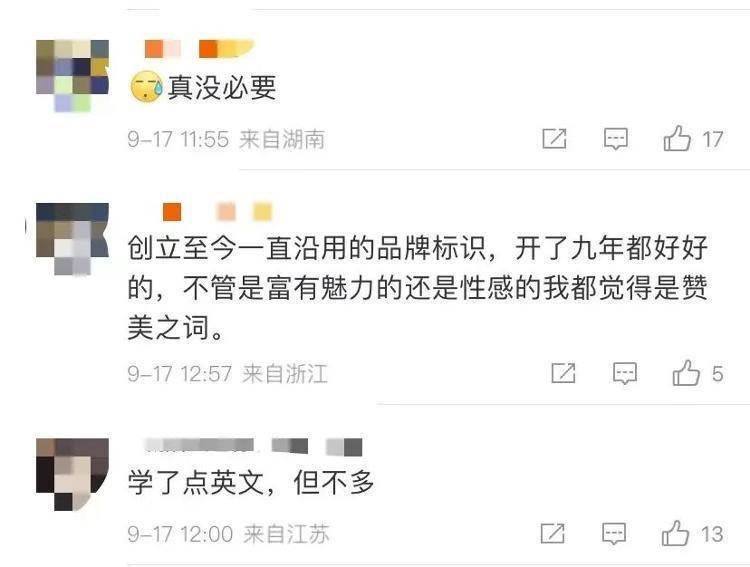 还有网友表示不理解,“Sexy”虽然也有很多种不同的意思解释,可以表达“吸引人的”等,但是可选择的英文单词这么多,为什么非要选择这样一个和品牌特点关联不大,还容易引发大家误会的单词。