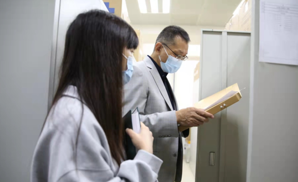 调研组一行实地参观南实集团综合部、物管部、运营部等部室,与工作人员亲切交流,详细了解各部室日常工作开展及督导档案管理等各项工作落实情况。