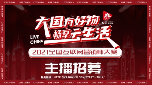 《大国有好物畅享云生活》2021全国互联网营销师大赛致力于打造“优质品牌+直播电商+专业主播”的全国标杆赛事,现持续开启选手招募。在大赛中获得优秀成绩的主播,将拥有接受央级媒体专访、获得大赛奖项证书及推荐至知名品牌就业的机会。立志加入电商产业又苦于没有平台经验的主播,速报名参加。