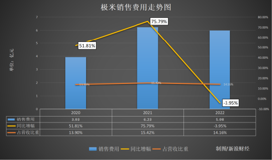 销售费用方面,2020年和2021年增长迅速,幅度为两位数,2022年销售费用为5.98亿元,同比下降3.95%;销售费用率为14.16%,同比微降。