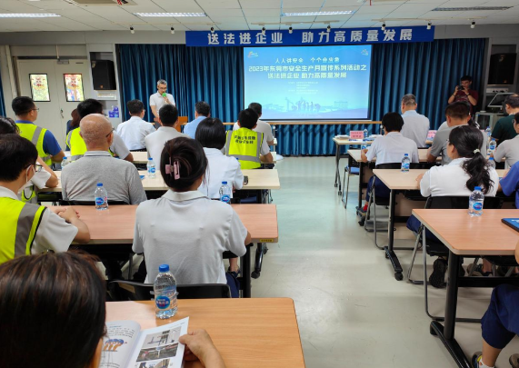 现场举行了“送法进企业 助力高质量发展”开班动员仪式。市应急管理局四级调研员钟仲贤表示,安全文化是企业文化中最不可或缺的,也是最重要的组成部分,这是安全管理工作事前监督体系的重要一环,企业要提升全员安全意识与安全技能,营造良好的人人讲安全、个个会应急的环境氛围,全面提升我市企业防范应对安全事故的能力水平。