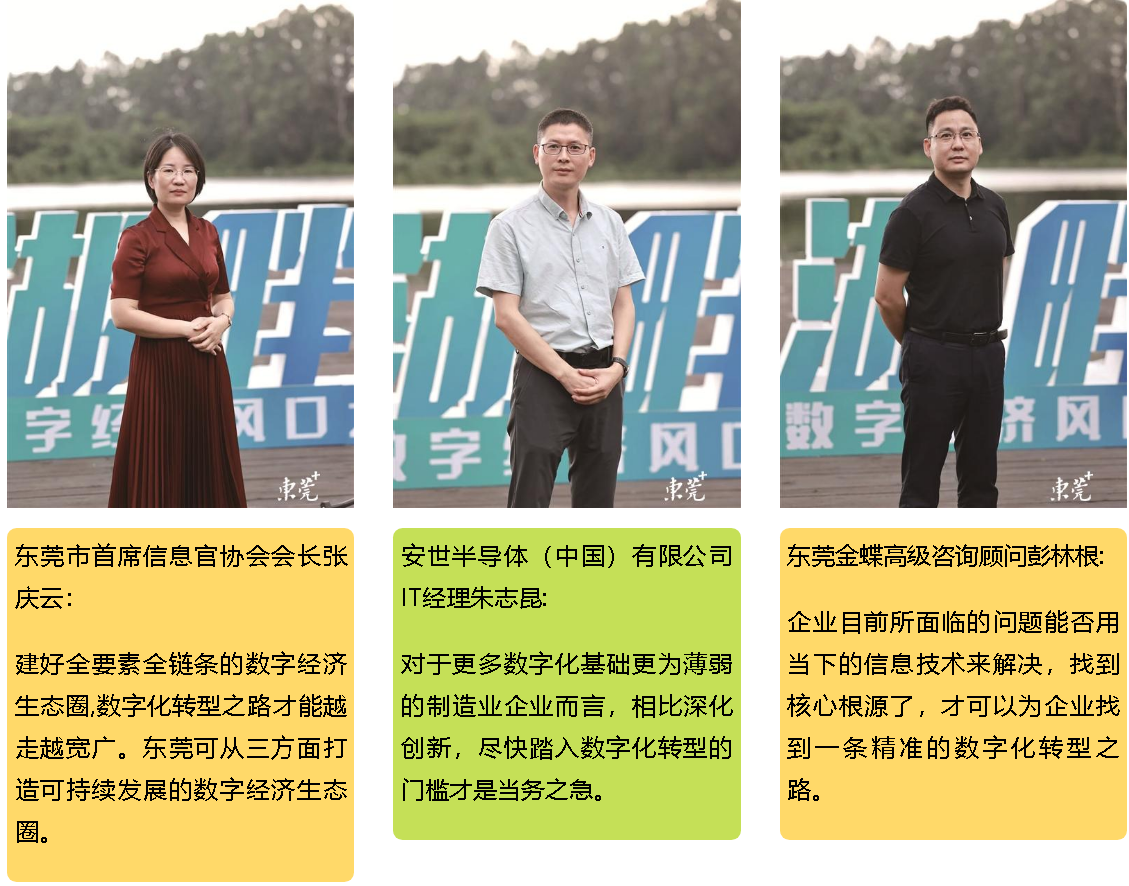 6月30日下午,东莞报业传媒集团首场“湖畔对话”活动在风景如画的松山湖畔举行,邀请东莞市的资深专家、企业家围绕东莞市数字经济发展展开了探讨。本期东莞日报三人行,也将由东莞市首席信息官协会会长张庆云、安世半导体(中国)有限公司IT经理朱志昆和东莞金蝶高级咨询顾问彭林根三位数字化转型的资深专家,以亲身经历者、参与者、见证者的微观视角,呈现他们眼中东莞企业数字化转型的契机、路径、方法、节点等实践层面、操作层面的东莞数字经济。
