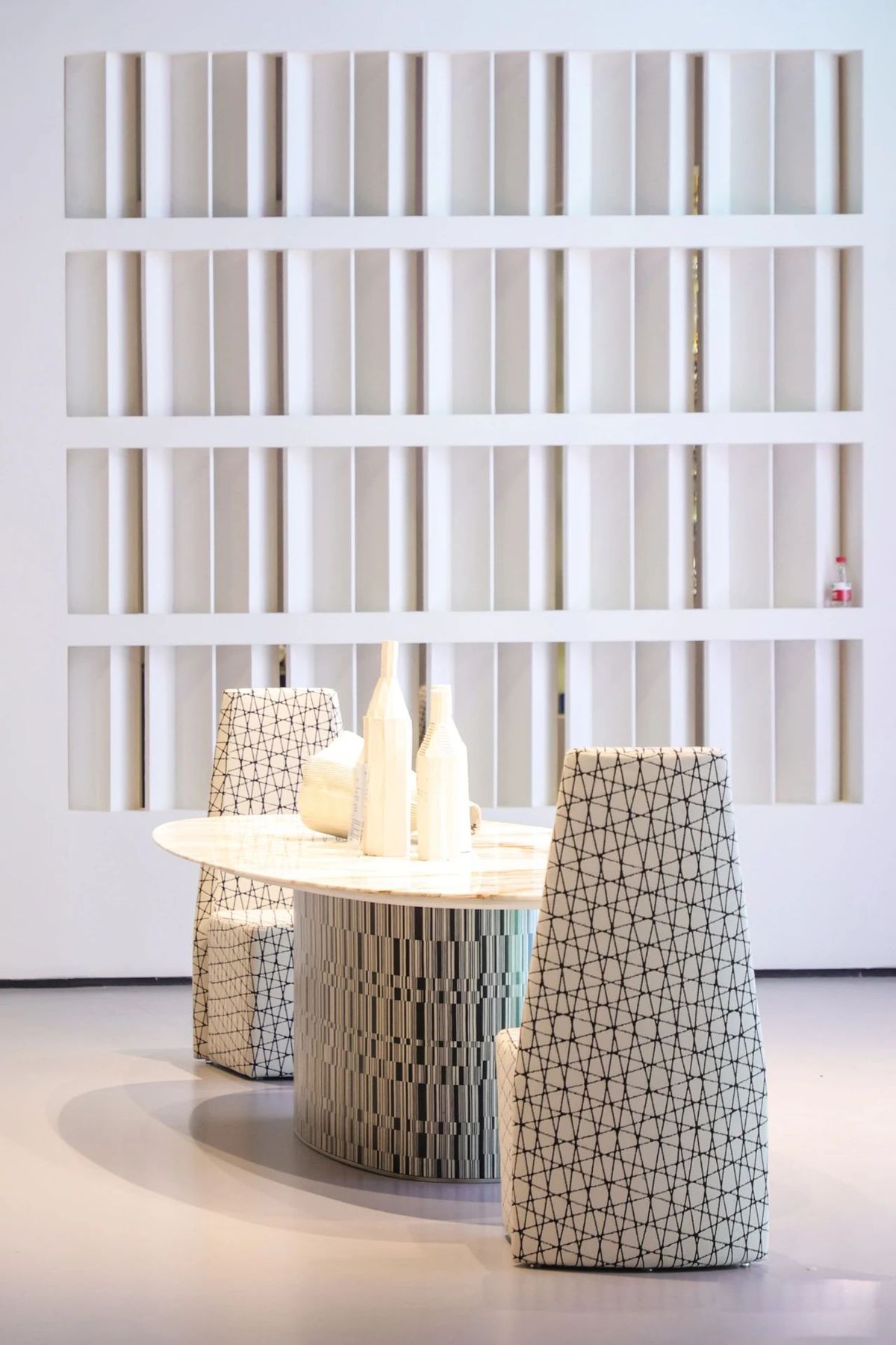 而在疫情形势吃紧的2021年,IAID无限设计汇聚全球尖端设计,联合德国高端家具面料品牌JAB、SICIS、A2STONE、NORDICLIFE2021+、VALE、华十乐、喆木良森、庭序造物等国际知名大牌,整合设计优势资源,在东莞国际设计周现场搭建起一个潮范儿的“艺术生活馆”。