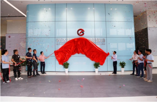 随后在鞭炮齐鸣,祥狮共舞的喜庆氛围中,在产业集团与会嘉宾及员工共同见证下,产业集团领导共同为光达制造·大朗智慧谷项目招商中心落成揭牌。