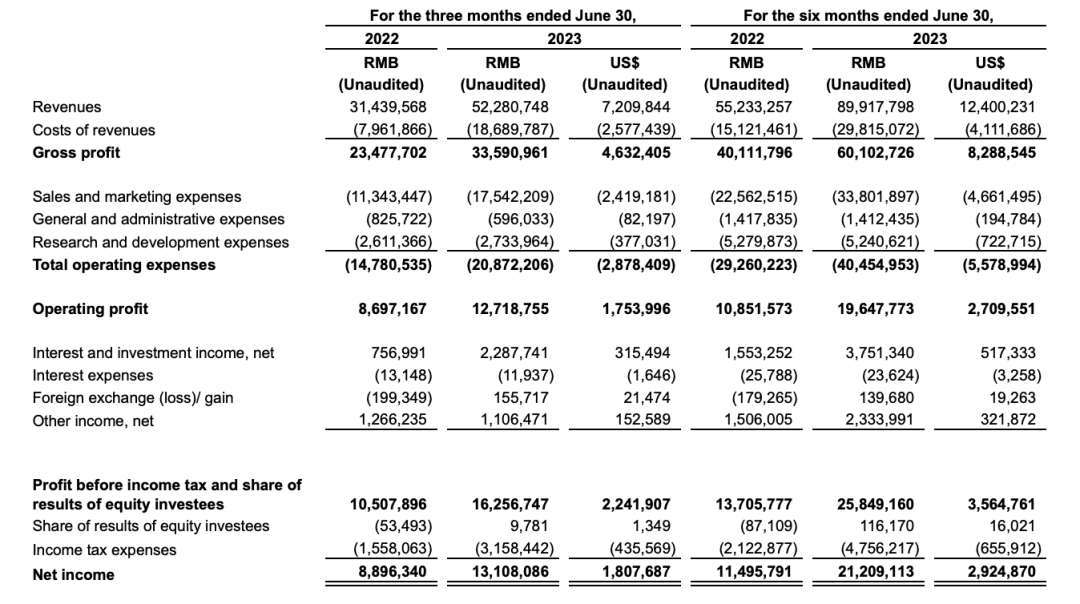 拼多多2023Q2损益表 图源:拼多多投资者关系网站