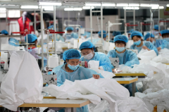 2022-05-12 09:44:24 | 企业邢台市疫情防控物资生产企业开足马力加紧生产助力疫情防控 5月11日,河北超越服装有限公司工人在生产隔离...