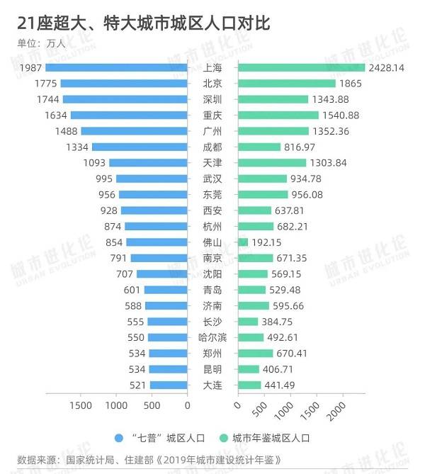 从第七次人口普查和《2019年城市建设统计年鉴》公布的数据来看,在21个超大、特大城市中,佛山城区人口大幅增加661.85万人,由此超越南京、青岛、济南、长沙、郑州等GDP万亿城市,首次跻身特大城市;成都紧随其后,城区人口增加517.03万人,超越天津、东莞和武汉,位居全国第六位;深圳城区人口也增加400.12万人,由此超越重庆和广州,升至全国第三位。