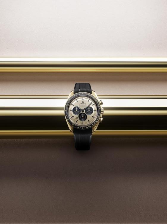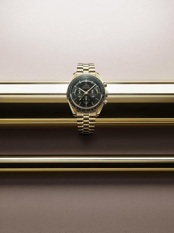 对于腕表表壳的材质,超霸系列月球表爱好者在现有表款中已有丰富的选择,包括精钢、Sedna 18K金和Canopus 18K金材质。今年,欧米茄 (OMEGA) 将月球表的设计提升至全新维度,推出两款全新Moonshine 18K金款腕表。