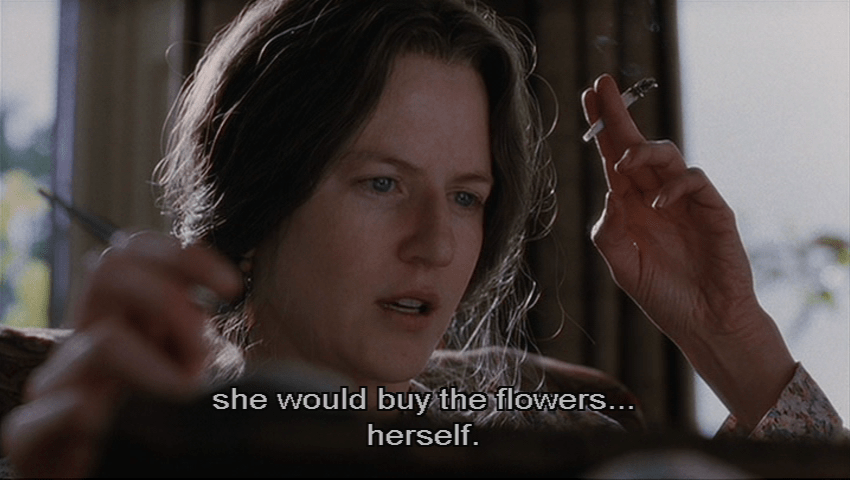 很多人认为这句话暗示了女性自我意识的觉醒,自己走进花店,挑选钟爱的花束,的确比被动接受看似美好但却不由自主的安排,更加让人期待和振奋。