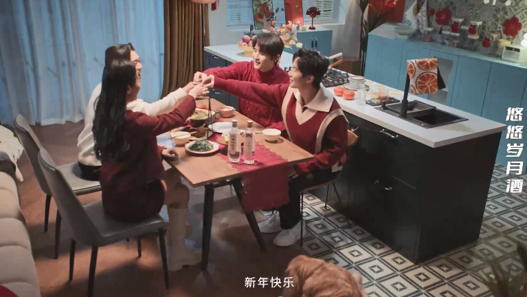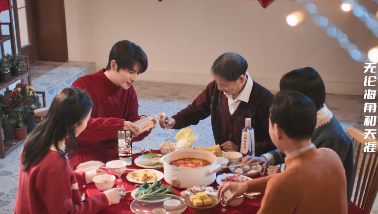 在风格上,这支春节短片为了将“沱牌聚年味,美好到万家”的主基调完美呈现,大到演员的妆发服饰和各种阖家团聚的环境构建,小到饭桌上一盘盘香味扑鼻的美味佳肴和一句句耳熟能详的嘘寒问暖,以及一瓶瓶绵甜爽净、香味谐调的至臻佳酿,都让融入满满中国年味的喜庆元素,拥有令观众一秒代入其中的魅力。