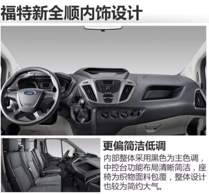 新全顺车型主打商务用车,在内饰设计上更偏简洁低调。内部整体采用黑色为主色调,中控台功能布局清晰简洁,座椅为织物面料包覆,整体设计也较为简约大气,视觉效果也与该车定位如出一辙。而大通V80采用灰色的饰版,按照商用车的额标准设计的,中控台整体样式较为规整,毫无时尚气息。