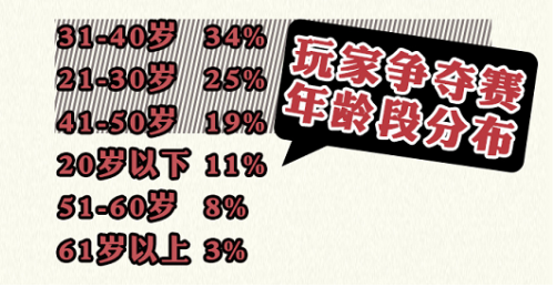 “最强玩家”种类多样、玩法丰富的活动吸引了全国各地、不同年龄层的用户。其中广东用户占16.7%,成为汇聚最多“最强玩家”的省份,北京、江苏两省凭借11.6%的用户和8.5%用户位居第二、三位;而在参与活动的用户群体中,31-40岁用户占投资总数的34%,21-30用户占25%,更有20岁以下和61岁以上的用户参与。可见在互联网金融投资方面,民众的投资意识越来越强,互联网金融投资项目不仅仅是青年或中年的专属。
