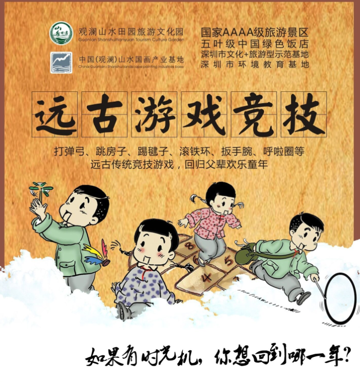 “那个时候,我们可没什么玩具,但又什么都是玩具,简单、朴素,但很快乐满足”,80后的友友们,还记得童年时的打弹弓、跳房子、踢毽子、滚铁环、扳手腕、呼啦圈、丢沙包、抓石子吗?10月1日-5日,带上孩子来山水田园体验这些远古怀旧的传统经典游戏吧,一方面重温幸福时光,一方面与孩子亲情互动,山水间嬉戏、怀旧,回归父辈欢乐童年。