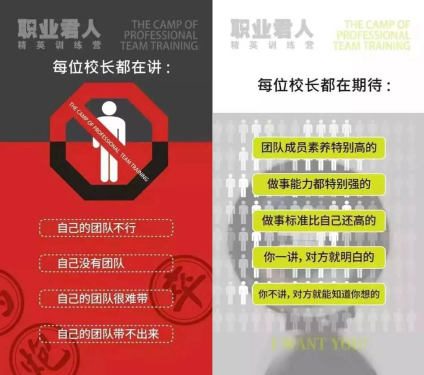 针对校长朋友们所面对的团队管理、提升及发展等问题,走遍全国120座城市、开课期数近200期、服务机构近300家、参课数达12900万人次的《职业君人精英训练营》将从“团队向心力与凝聚力打造”、“职业化团队、职业人打造”以及落地内训指导等多个板块进行讲解分享。