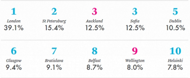 据商业地产服务及投资机构近期发布的《2017一季度全球顶级商圈租金报告》称,欧洲一季度的整体租金同比上涨4.3%,其中伦敦以39.1%的增幅稳居第一。在增速前十排名中有八个商圈位于欧洲,可见欧洲的经济基础实力和复苏力,尤其是在西欧西班牙和爱尔兰经济的复杂促进了消费者的信心指数。