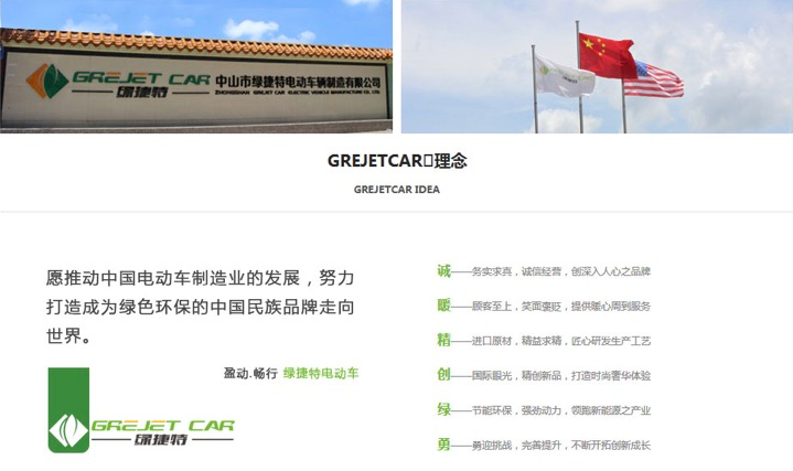 中山市绿捷特电动车辆制造有限公司,是一家专业从事车辆工程设计20余年的老牌企业,与来至美国加利福尼亚州全球顶极车辆设计团队合作创立了GREJETCAR(绿捷特)国际品牌,选址伟人故乡广东中山建立了占地50000平米电动车制造园。专业从事高端四轮电动车的开发及生产,现今已具备年产整车2万台的能力,是一家集自主研发,设计,生产,销售和服务于一体的高科技企业。