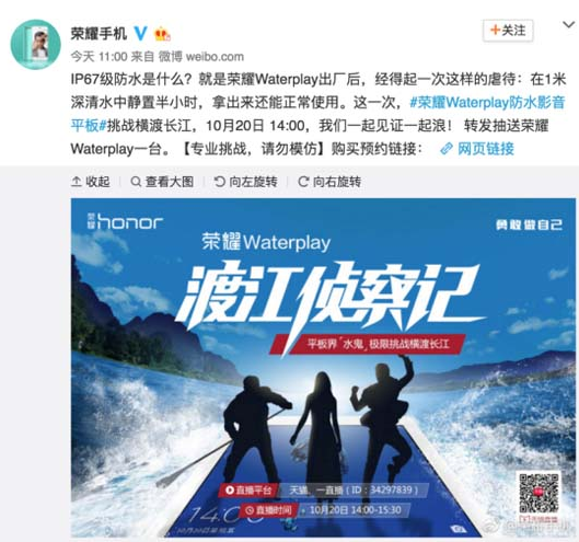 不论“你从远古走来,巨浪荡涤着尘埃”的深情赞颂,还是“孤帆远影碧空尽,唯见长江天际流”的豪迈壮阔,千百年来,奔腾不息的母亲河——长江,占据每一位国人心中的神圣地位。而就在国庆刚过去不久,号称平板界”水鬼”的荣耀Waterplay将于10月20日在长江第一湾挑战横渡长江。