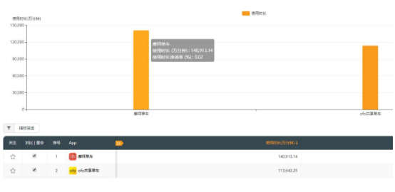 QuestMobile数据显示,在APP使用时长方面,摩拜单车总使用时间长达14.1亿分钟,比ofo的11.4亿分钟高了3亿分钟,领先幅度为24%。摩拜和ofo都有庞大的用户基数,除了总使用时长的比较之外,QuestMobile对两大品牌人均使用时长也进行了精确统计。数据显示,摩拜9月人均使用时长为35.34分钟,ofo为27.14分钟,摩拜领先ofo超8分钟,领先幅度达30%。
