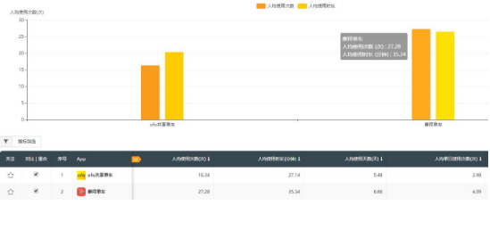 另外,APP日均使用次数方面,摩拜单车为3626万次,ofo则为2280万次,摩拜领先幅度达59%;人均单日使用次数摩拜为4.09次,ofo为2.98次,摩拜领先超过1次,领先幅度达37%;9月整月使用次数摩拜单车APP达10.9亿次,ofo则为6.8亿次,摩拜单车领先超过4亿次,领先幅度约为60%。