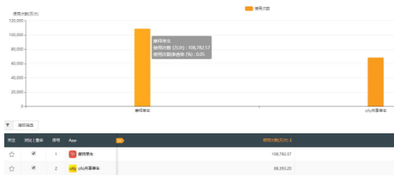 根据两家公司公布的最新数据,这与QuestMobile统计的APP日均使用次数有着很高的匹配度,也在客观上证实了两项数据的真实性。整体来看,摩拜单车APP使用频率要远高于ofo,这说明与ofo相比,市民对摩拜单车情有独钟,更倾向于使用摩拜单车。