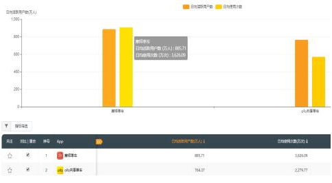 再从其他方面来看,今年9月摩拜单车日均活跃用户量达886万,领先于ofo的764万,领先幅度达16%;人均使用时长摩拜为35.34分钟,ofo为27.14分钟,摩拜领先超8分钟,领先幅度达30%;人均使用天数摩拜达6.66天,领先于ofo用户的5.48天22%。