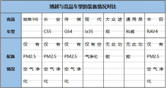 在空气净化技术研发方面,吉利汽车一直走在各大车企的前列。吉利集团总裁李书福曾这样形容沃尔沃的车内空气清洁技术:“打开车门是北京,关上车门是北欧”。在收购沃尔沃后,吉利汽车便将这一空气质量管理系统推广应用至博瑞、博越、帝豪GL等众多车型上。吉利博越作为吉利汽车精品车发展战略首款SUV产品,通过配备PM2.5四层空气净化器与AQS空气质量管理系统,成为一款“会呼吸的SUV”。