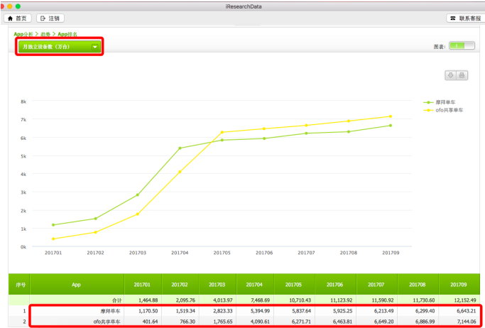 艾瑞9月数据显示,ofo月度活跃用户规模增长至7144.06万,排名全行业第一,这也是共享单车平台月活用户首次破7000万,摩拜月度活跃用户规模为6643.21万,排名行业第二。综合艾瑞今年整体数据来看,ofo月度活跃用户使用次数增长至17.4亿次,摩拜月度总使用次数为8.8亿次,ofo为摩拜的2倍。而且,ofo月度活跃用户规模自5月超越摩拜之后,已经是连续第5个月领先摩拜,稳居行业第一;ofo用户总使用次数已经连续8个月远甩摩拜,成为用户粘性最强的平台。