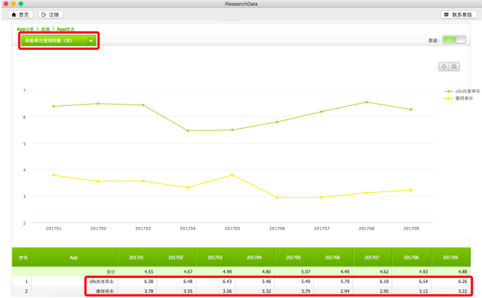 艾瑞9月数据还显示,ofo单个用户单日使用次数增长至6.26次,摩拜增长至3.22次,ofo为摩拜的近2倍,领先摩拜达3.04次、超摩拜近100%,摩拜近乎只有ofo的一半。综合艾瑞1-9月数据来看,摩拜单个用户单日使用次数近乎连续9个月不足ofo的一半,ofo连续9个月领先摩拜。