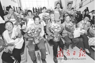 在讲解员的带领下,他们参观了市文化馆非物质文化遗产展示厅,听取了讲解员对东莞非遗项目的详细介绍,观看了非遗传承人的展演活动,对东莞的传统文化有了更深入的了解。为了让群众更了解环卫工人的日常工作和生活,市文化馆邀请了先进环卫工人代表上台发言,与市民分享感受。10名获得国家、省、市劳模奖项的先进环卫工人代表也上台接受献花、献礼。