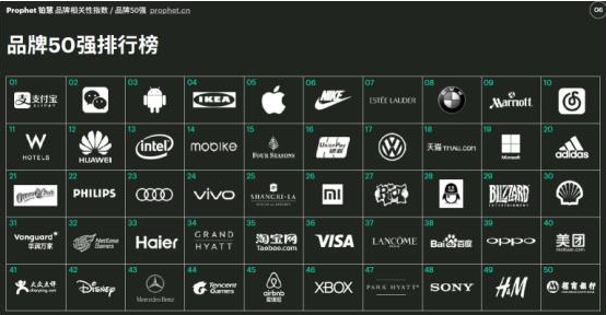 品牌影响力的高低是衡量一个企业品牌价值的重要指标,品牌的力量是企业多年经营培育的结果,是消费者产生购买行为的重要因素。10月24日,全球顶尖品牌咨询公司Prophet铂慧发布了2017中国品牌相关性指数及品牌50强榜单,揭示与当今中国消费者最息息相关的品牌,榜单出炉,一时间引来众多网友关注。