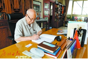 直至去年,邝老身体状况有所下降,已不能坚持每天到办公室,为了不耽误工作,邝老买了一部智能手机,并向办公室的年轻人讨教如何使用微信。如今,邝老不仅懂得使用微信查看信息,还会用手写板熟练回复信息。