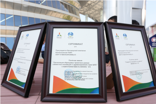 上合馆组委会及欧亚医学合作与发展中心,授予杭州脂老虎生物科技有限公司“上合国家协同创新医疗健康示范工程承担单位”荣誉称号,并由哈萨克斯坦医学会会长萨特科娃·艾让颁奖。