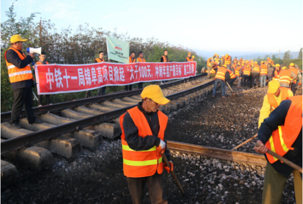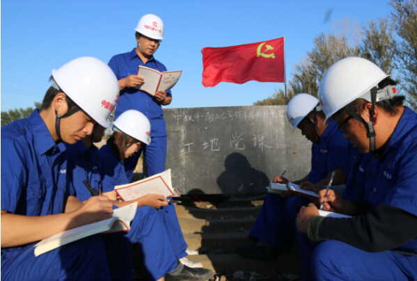 中铁十一局集团三公司承建的锦阜高铁路扩能改造工程Ⅱ标段正处于施工大干的关键时期。近日来,该标段项目党工委为了不影响施工进度,充分利用现场休息时间,组织施工一线党员就地在废弃的轨道上开展“重温入党志愿、入党誓词”活动暨“两学一做”专题党课学习,有效解决了工学之矛盾。