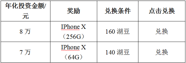 具体,官方活动规定:活动期间,年化投资500元(除新手标之外),即可获得1枚湖豆,以此类推,可一直累计,上不封顶。湖豆可在活动期间内兑换成真实奖品或者是现金奖励。对此,湖商贷平台也为大家准备了丰厚的奖品和福利,具体都有哪些系列的奖品,我们先睹为快吧——