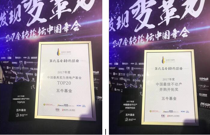 今天,由中国房地产业协会、亚太房协指导,第一财经成员机构金砖传媒主办的“2017第六届金砖论坛中国年会”在上海隆重举行。本次年会共分全球产业变革峰会、全球房地产金融峰会、全球资产配置与财富管理峰会、中国存量资产运营与城市更新峰会四个版块展开。会上还举行了第六届金砖价值榜颁奖盛典。五牛基金作为国内领先的股权投资机构受邀参加本次年会并斩获“2017年度中国最具实力房地产基金TOP 20”以及“2017中国最佳不动产并购开拓奖”两项大奖。