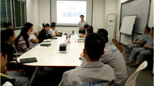 10月31日晚,东莞市尼嘉斯塑胶机械有限公司在总部会议室开办了主题为“关键对话”的读书分享会。以“关键对话”为主题,旨在畅谈读书的收获及运用到日常的工作中,不仅是与同事之间的沟通交流,还有在面对客户的时候更需要高效沟通。