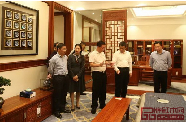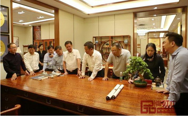 国寿红木总经理陈卫棠为考察团一行介绍,国寿红木作为红木行业内最早实现全国专卖店统一形象的企业,在产品设计、专卖店软装硬装、规划布局上已全面实现标准化,确保产品从原材选料,蒸煮烘干木材,生产制作都能实行流水线作业,并适用于国内任何地方不易开裂变形。