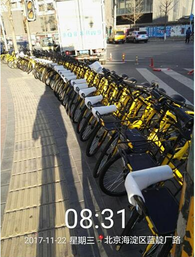 从爆料网友拍摄的照片中,可以发现,11月22日8点,在北京海淀区蓝靛厂路附近,车筐上还带着保护膜的小黄车出现在街边,据附近居民反映,昨天此地还没有这些小黄车,明显是投放不久的新车。