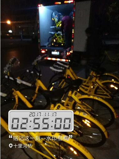 11月17日凌晨2点55分,在北京市朝阳区十里河桥附近,ofo小黄车就被曝出违规投放新车。许多小黄车座位和车把上的塑料薄膜都还没来得及撕除。此前还有媒体称ofo违规在上海大量投放新车,并甩泥浆“做旧”。