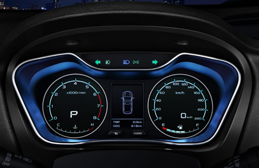 3.5寸TFT仪表盘突破常规,没有设计指针,左转速右时速仪表盘度数清晰,中间的行车电脑还能显示包括胎压、胎温、油耗、雷达、车辆故障等各种信息,透着十足的科技感。远景SUV顶配车型拥有360°全景影像功能,屏幕能够清楚地显示车辆周围的情况。