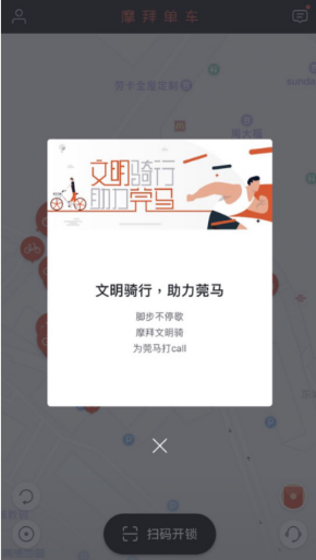 (摩拜单车app提示文明骑行)