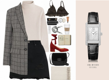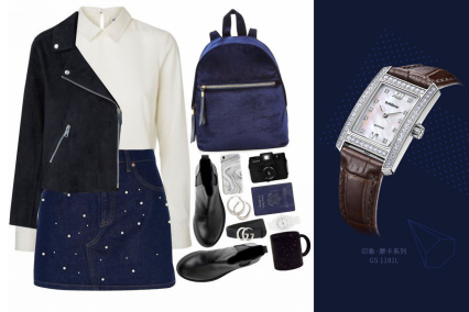 柔和的针织打底与牛仔短裙减少了整体的中性感,搭配风格时尚,气韵优雅的银表GS1181L,标榜出众夺目又高雅迷人的女性魅力!