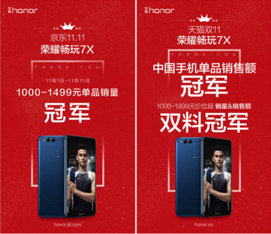 (图:荣耀畅玩7X双十一获多项冠军)